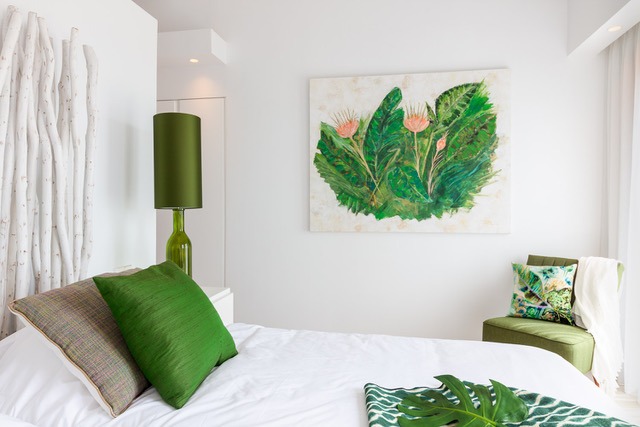 Proyecto Residencial en Son Gual. Las obras fueron creadas a partir del concepto interiorista del proyecto, trasladando la naturaleza exterior al interior de la vivienda.