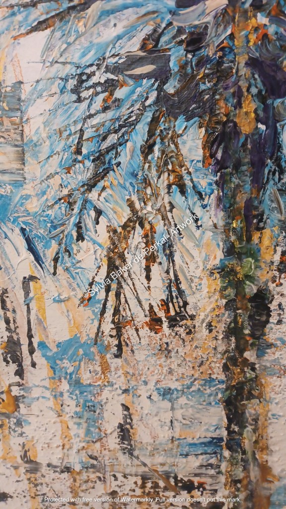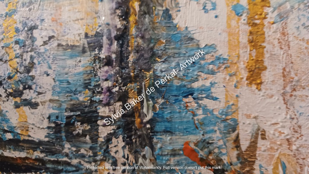 sylviabakerdeperkal posted: ” Acrylics + gold pigment + gold leaf + gesso on canvas. 70 cm x 90 cm. Details and close-ups: “