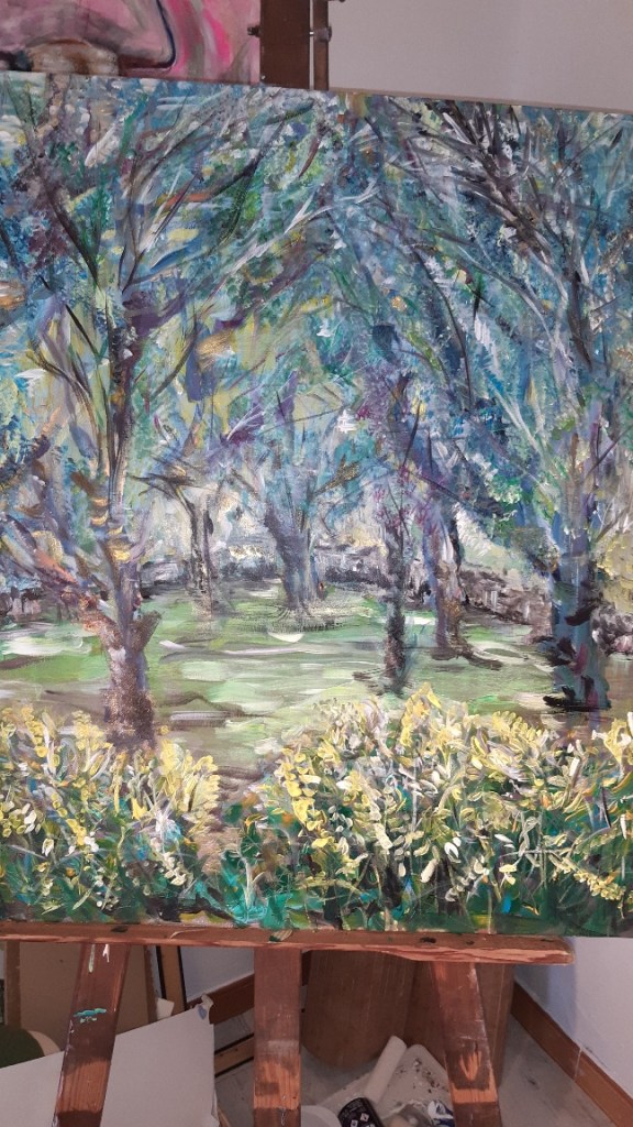 I have been living in Mallorca (Spain) for the last 30 years in a country home surrounded by nature. I am a translator by profession, but in 2019 a lifetime of loving art came into its own and painting became a necessary passion for me. I suddenly had the time, the encouragement, the confidence and the inspiration to pour all the beauty I see around me on canvas. A selection of my recent work (pieces privately owned, pieces sold and work available) is shown on this site.