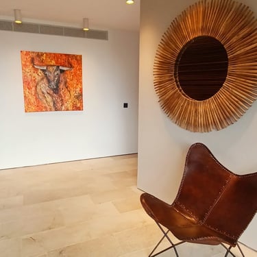Su proceso de trabajo es directo y fluido, lo que permite a interioristas incorporar el arte al proyecto con agilidad y precisión, evitando largos procesos de búsqueda hasta encontrar la pieza adecuada.