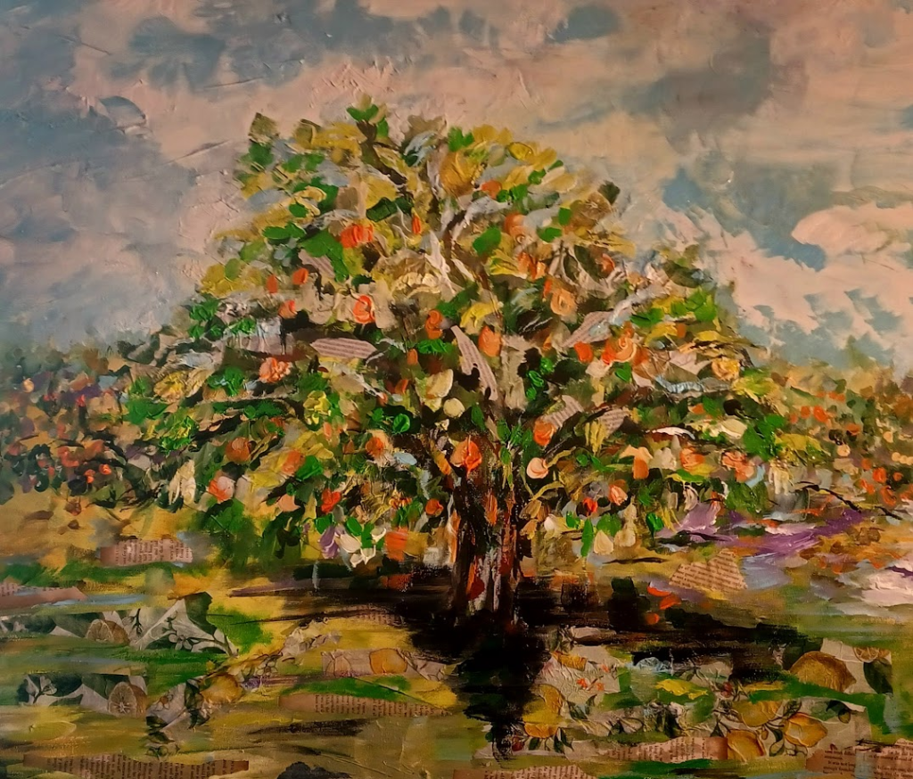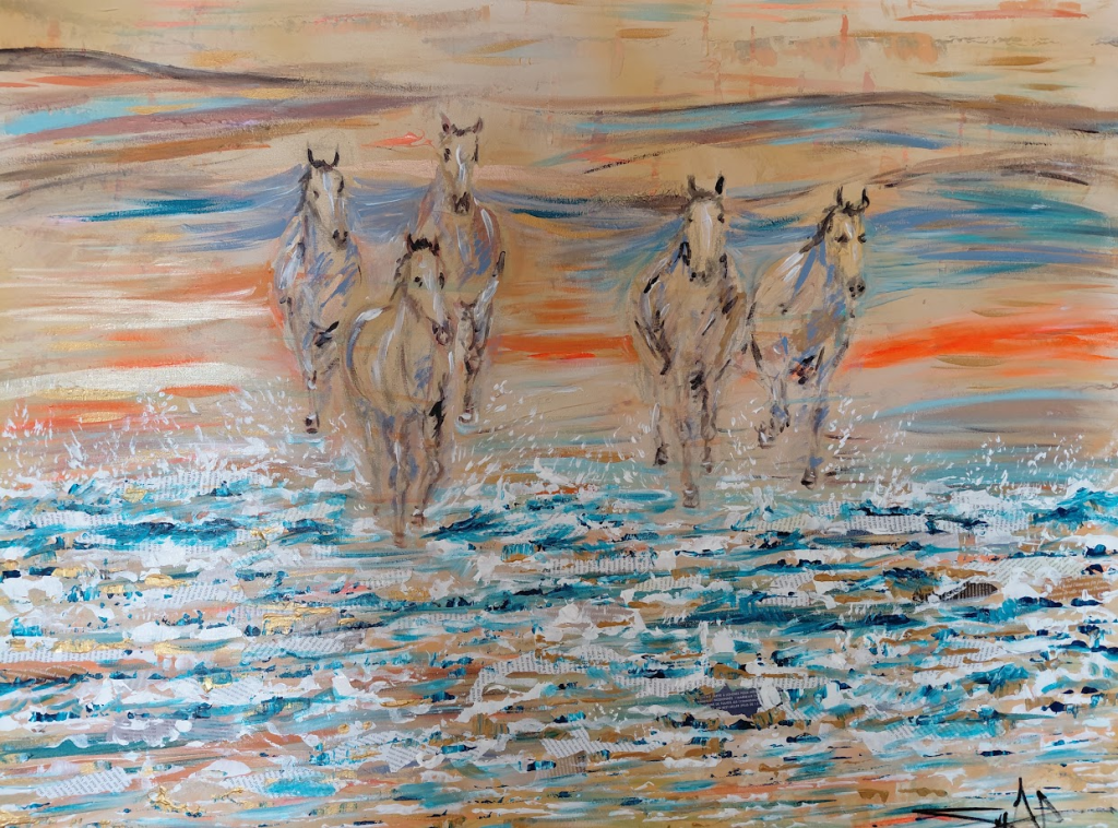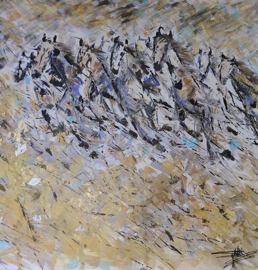 Acrylics & gold leaf & gold pigment & gesso on canvas
