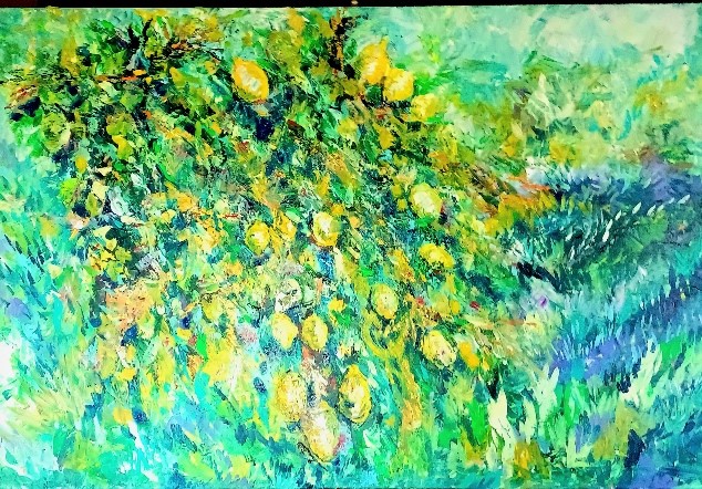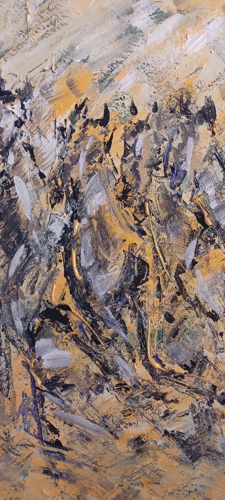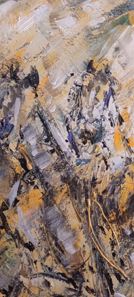 Acrylics + gold leaf (knife painting)- 90 cm x 70 cm. (SOLD)
