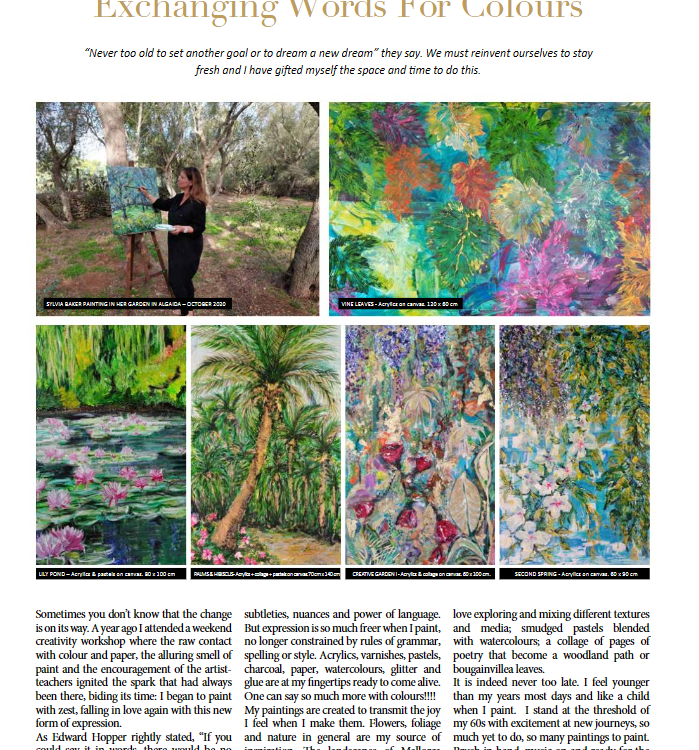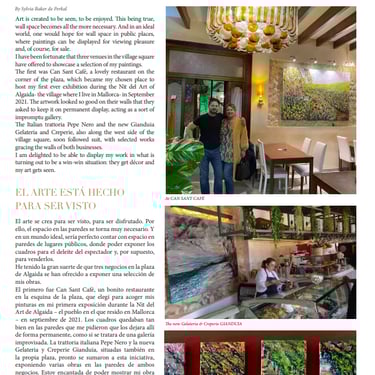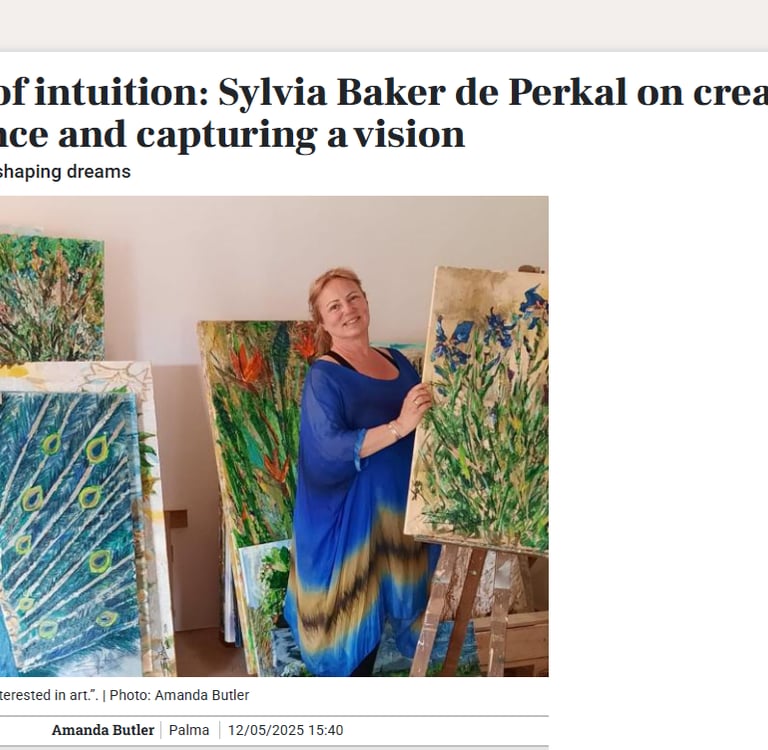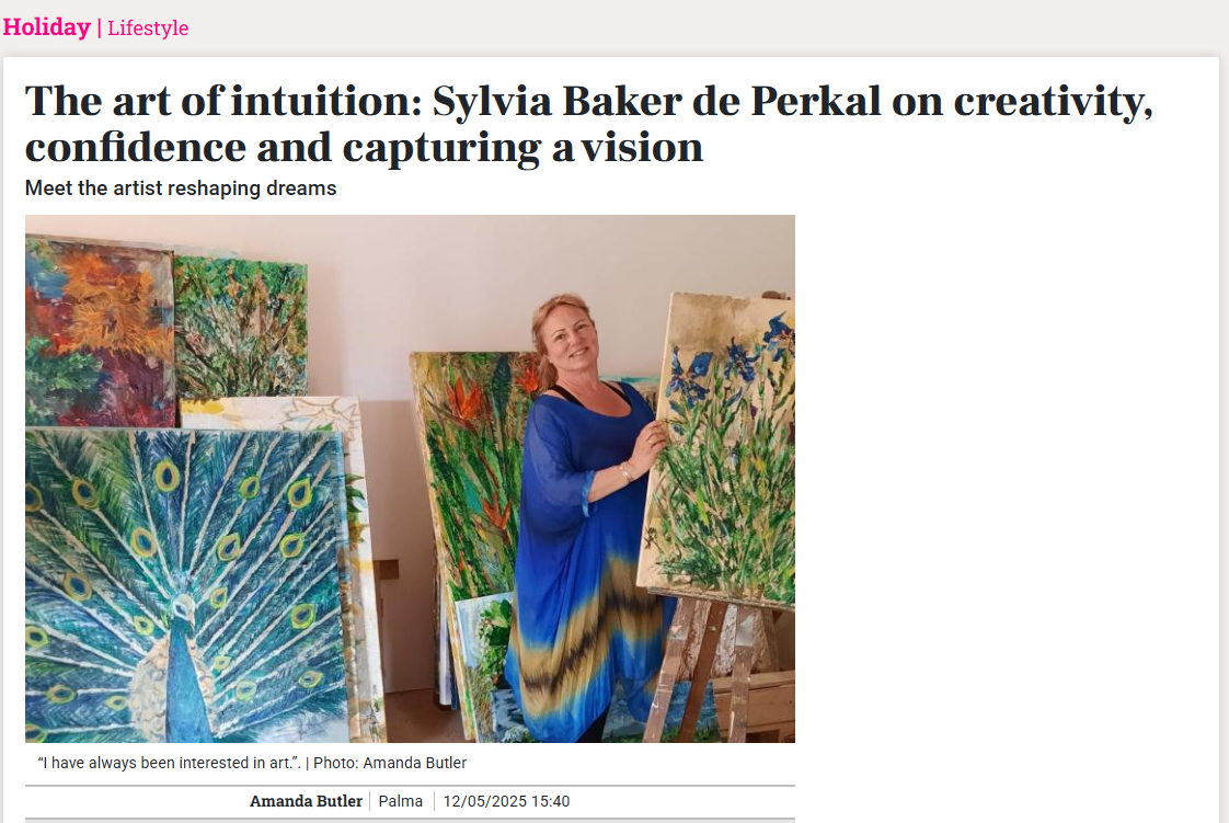 Entrevista publicada en Majorca Daily Bulletin sobre la trayectoria de Sylvia Baker de Perkal, su proceso creativo y su forma de traducir una visión, una atmósfera o un espacio en pintura. La publicación recorre su vínculo con la naturaleza mallorquina, su trabajo por encargo y la dimensión emocional de su pintura.