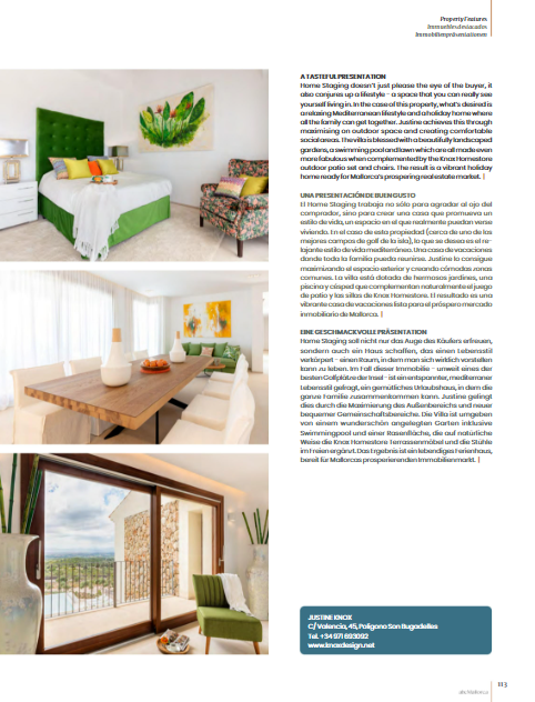 Publicación en ABC Magazine dentro de un reportaje de interiorismo y home staging en Mallorca, donde distintas obras de Sylvia Baker de Perkal forman parte de la propuesta visual del espacio.