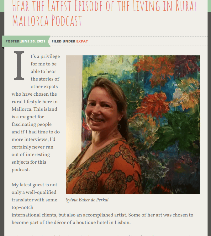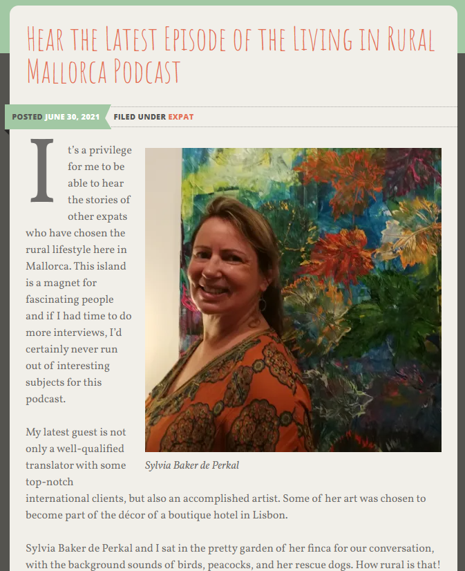 Participación en Living in Rural Mallorca, un episodio dedicado a la historia de Sylvia Baker de Perkal, su vida en el entorno rural de Mallorca y su vínculo con la creación artística. La conversación recorre su experiencia en Algaida, su relación con la naturaleza y la manera en que arte y vida cotidiana conviven en su universo personal.