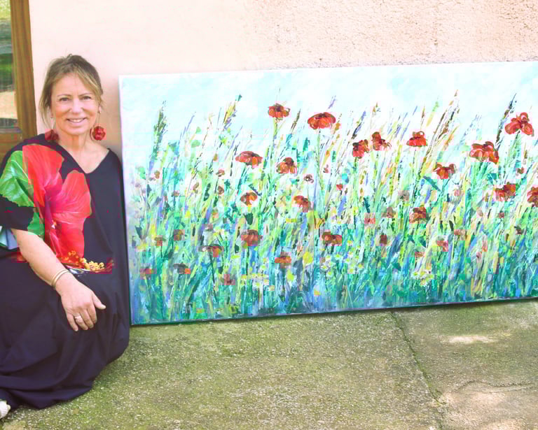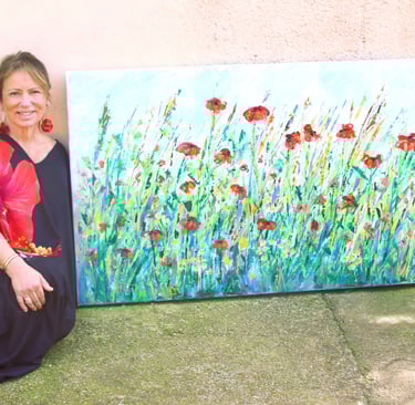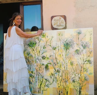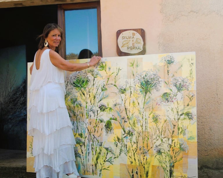 Desde entonces Sylvia ha desarrollado una obra intuitiva y profundamente ligada a la naturaleza. Flores, plantas, paisajes y elementos orgánicos aparecen como motivos recurrentes en sus piezas, donde el color y las capas de materia reflejan, a través de sus trazos, el movimiento y la vitalidad que la caracterizan.